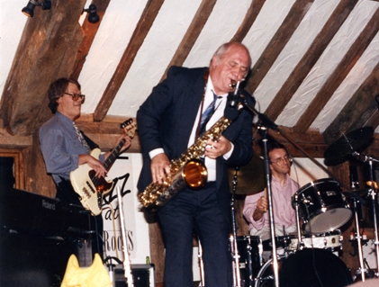 Bob Bernard quartet at the High Rocks in Kent. Bob on tenor, Phil on bass, and Dave Mattacks (ex Fairport Convention) on drums. Dave Johnson piano (out of picture).
