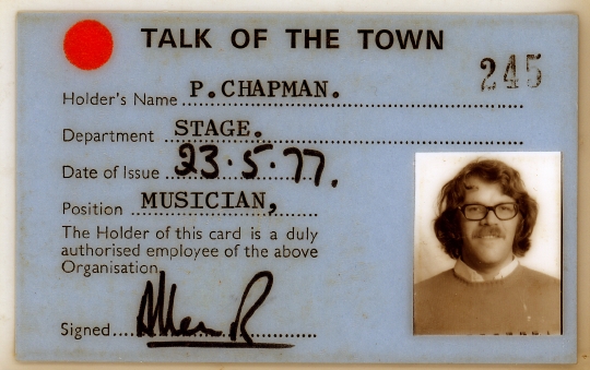 With Cyril Bevan (drums) and Phil Phillips at the Talk of the Town, London mid 70Ís.
